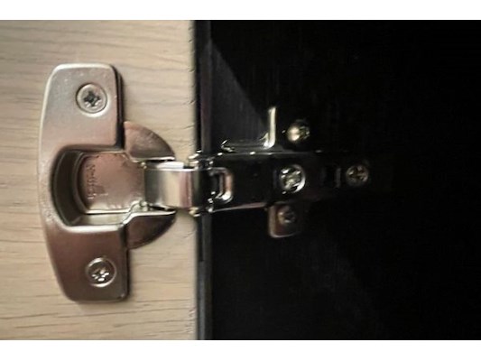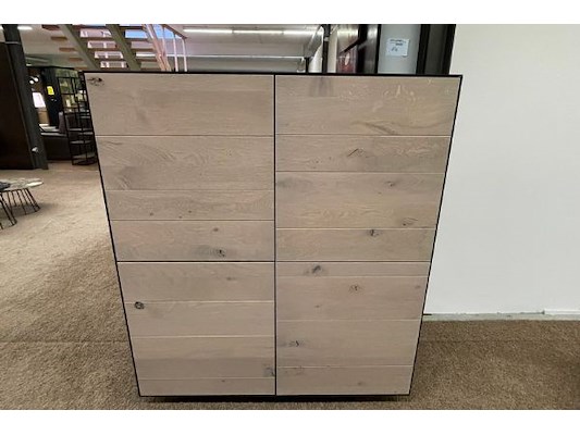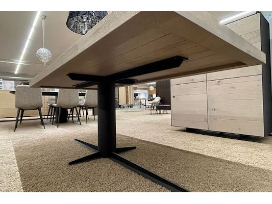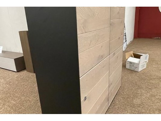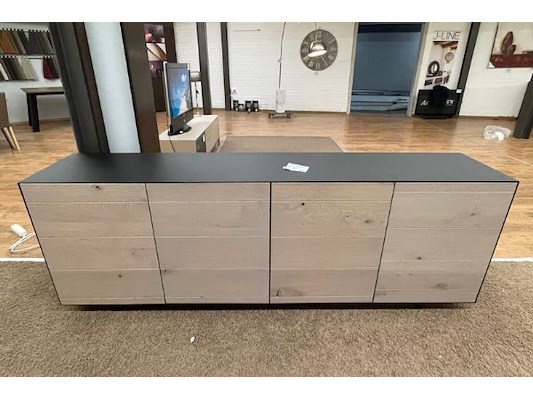 Dressoir 220 x 80 x 45 cm, barkast 126 x 149 x 45 cm, tafel 220 x 100 x 78 cm hoog, fineer eik E0411 6 ral 9005, winkelwa...