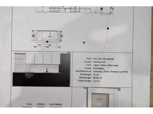 Ongeveer 381.4 x 60 x 222 cm hoog, werkblad dikte 2.5 cm, zelf demonteren, nieuwprijs 24.882 euro Front ...
