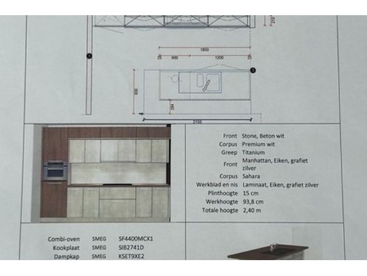 Wandmeubel 320.5 x 60 x 240 cm hoog, werkblad dikte 3.8 cm, zelf demonteren, nieuwprijs 11.800 e...