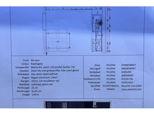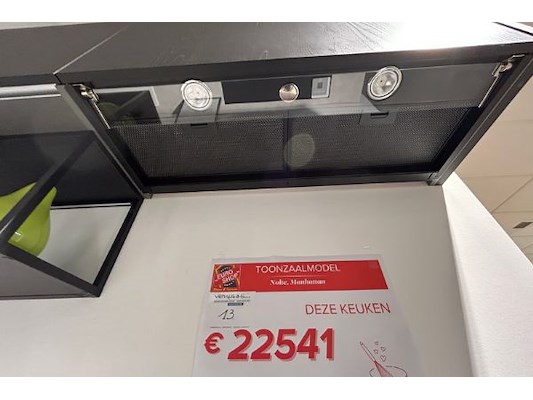 Keuken Manhattan in L-vorm, ongeveer 304.5 x 60/335 x 340.8 cm hoog, tafel 140 x 90 x 74.5 cm hoog, nieuwprijs 22.541 eur...
