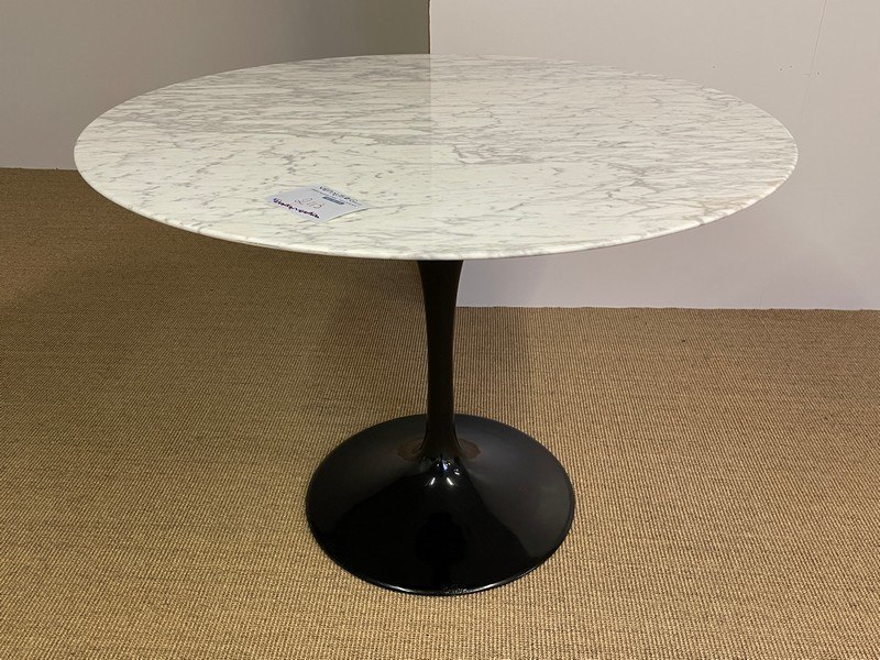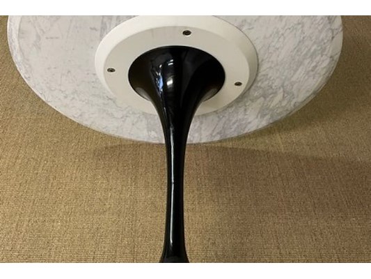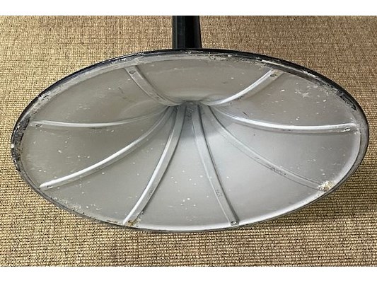 Blad in natuursteen, zwarte voet in kunststof, 100 cm diameter, 74 cm hoog, zeer lichte schade aan voet