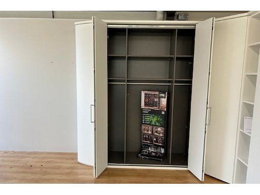: 310 x 351 x 244 cm hoog, zelf te demonteren, kleur wit met grijze handvaten, winkelprijs 8.668 euro ...