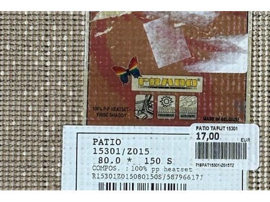 Waaronder 2 Orlando tapijten 85 x 160 cm, verkoopprijs 39 euro (1x blauw en 1x beige), 1 Patio karpet 80 x 150...