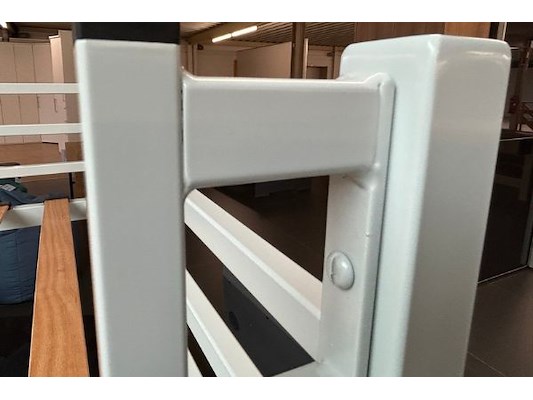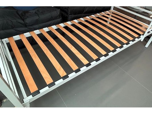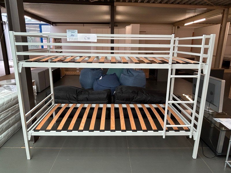 205 x 95 x 147 cm hoog, kleur lichtgrijs metaal, incl 2 lattenbodems, winkelprijs 780 euro
