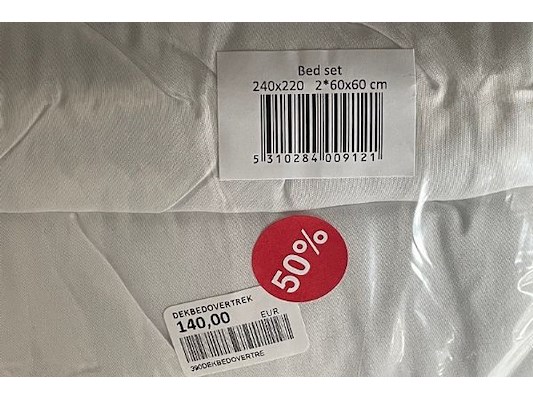 Dekbed 240 x 220 cm, 2 kussens 60 x 60 cm, winkelprijs 140 euro/set