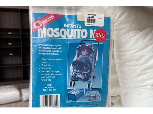 4 babydekbedden, 2 bedlinnen, rek, 2 moskitonetten