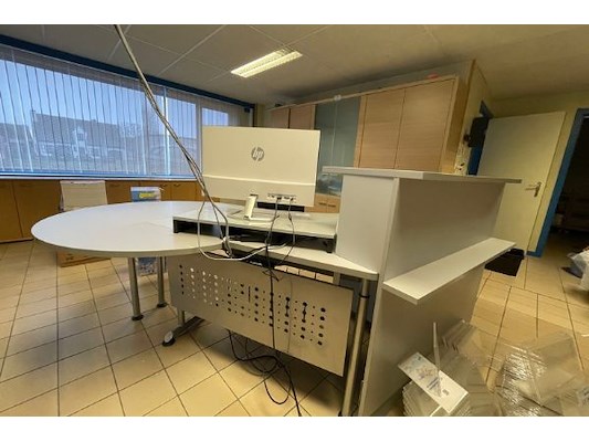 Bureau 250 x 110 x 111 cm hoog, verstelbaar, bureaustoel en mobiel ladenkastje