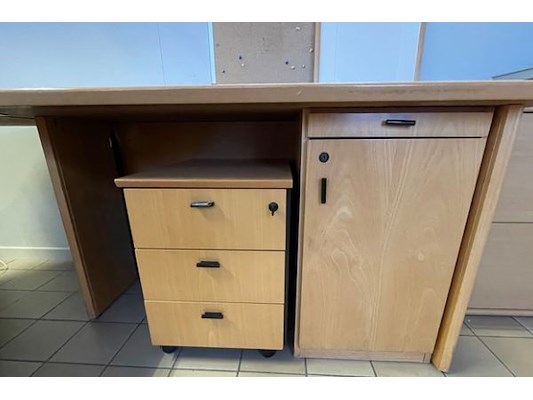Hoekbureau 200 x 80/220 x 75.5 cm hoog, kastje, bureaustoel
