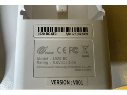 PAX betaalterminal model A920 met oplader L920-BC