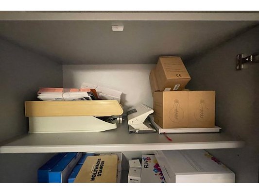 Waaronder omslagen, toners, schrijfgerief, rolmeters