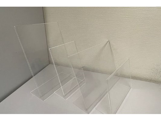 Ongeveer 120 stuks plexi folderhouders, verschillende formaten