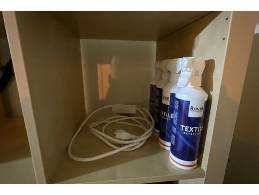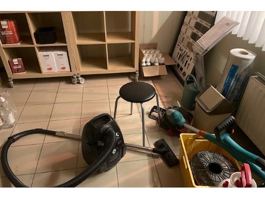 Waaronder 4 kastjes, onderhoudsproducten (80 stuks), stofzuiger, kantenmaaier druksproeier, excl lot ...