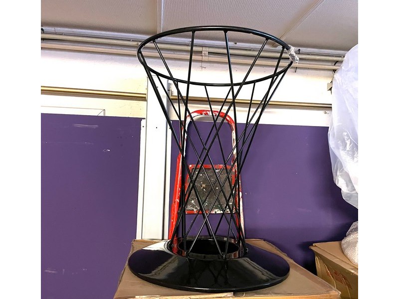 Zwart metaal, 53 cm diameter x 68 cm hoog, in doos