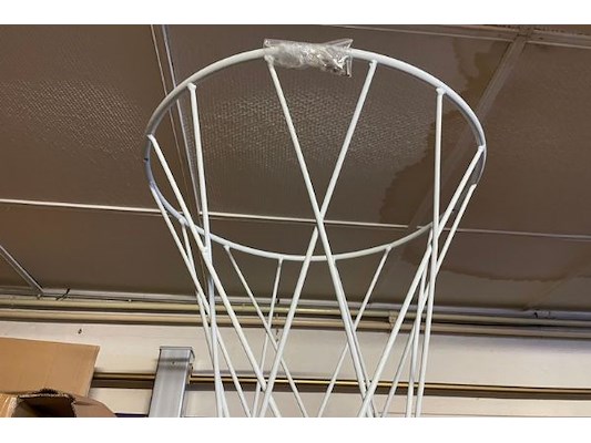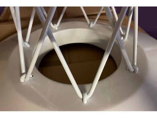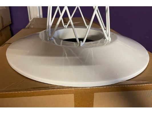 Wit metaal, 53 cm diameter x 68 cm hoog, in doos