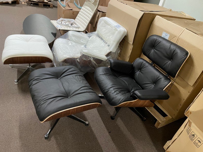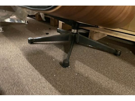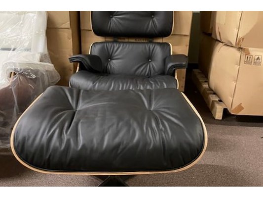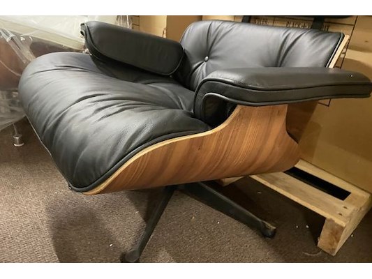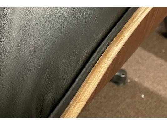 Zwart leder, walnut hout met voetenbankje, d'ascanio design, bevestigingen na te zien