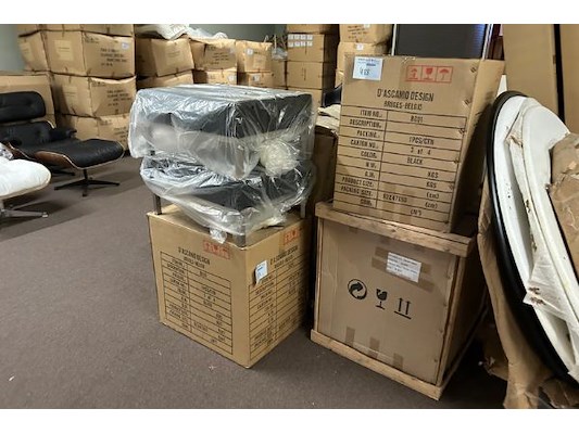 200 x 180 x 75 cm hoog (totaal), zwarte stof/leder, in 4 dozen