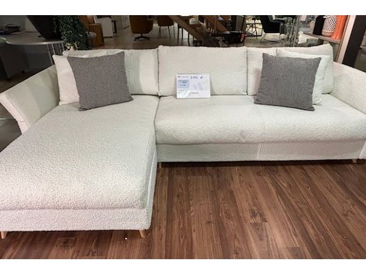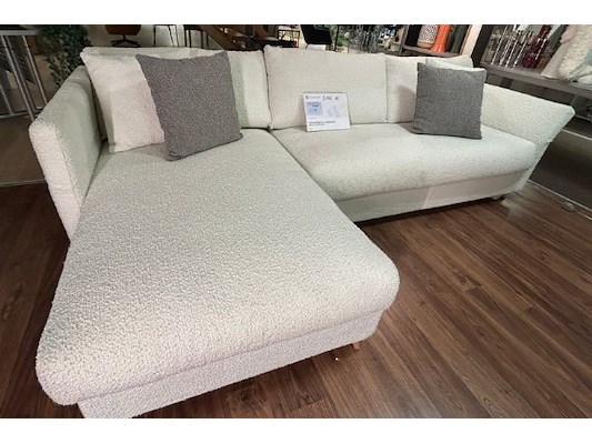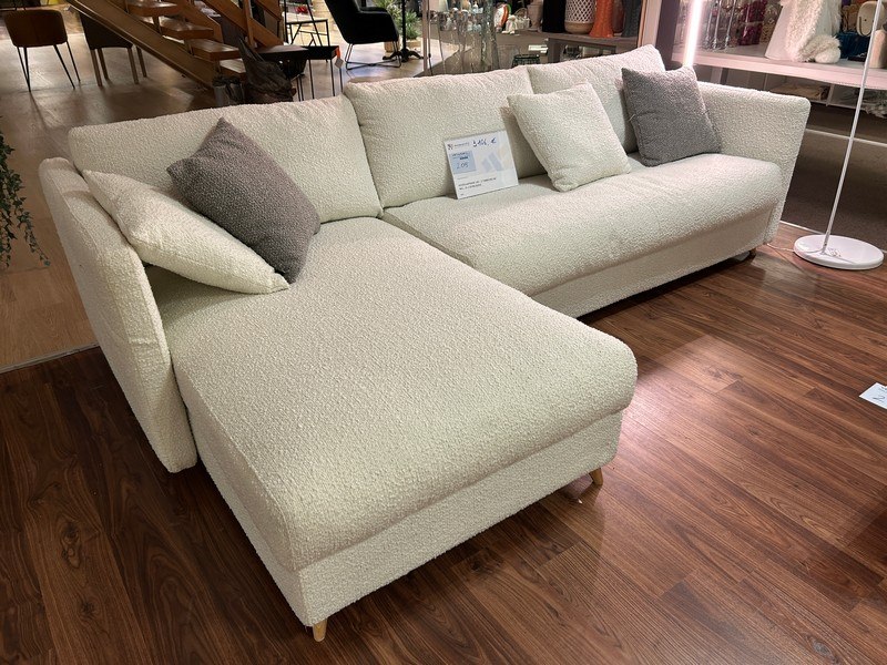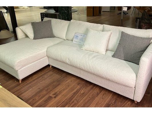 140 - 272 x 88 x 100/160 cm, incl 2x2 sierkussens, wit stof, winkelwaarde 3106 euro