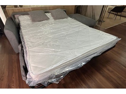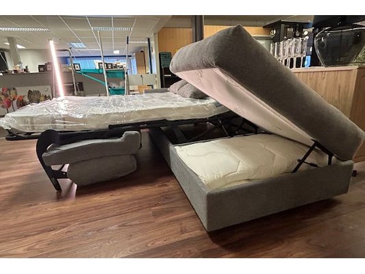 Slaapbank 259 x 90 x 105 cm, grijze stof, poef, winkelwaarde 3019 euro