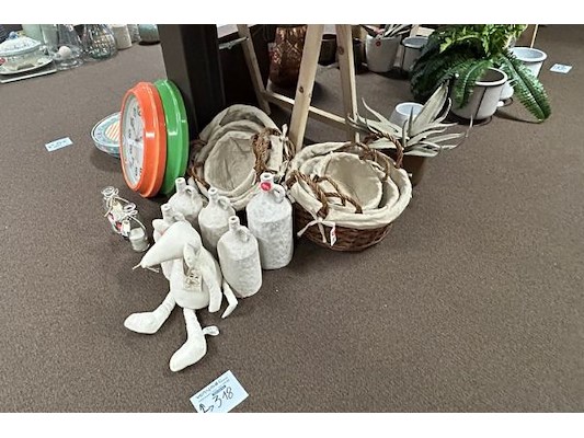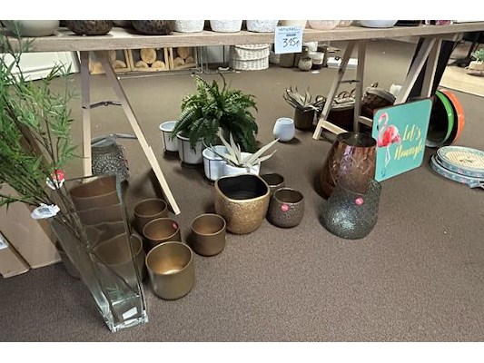Ongeveer 40 stuks decoratie waaronder diverse bloempotten, vazen, klok, manden, winkelwaarde van 4.95 tot 47.90 euro per ...
