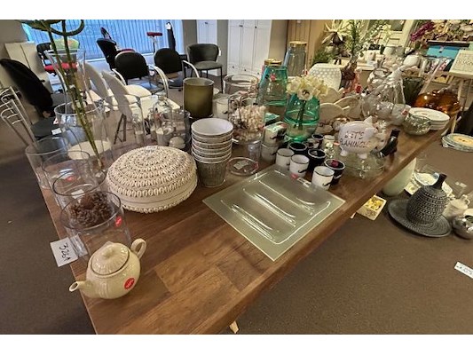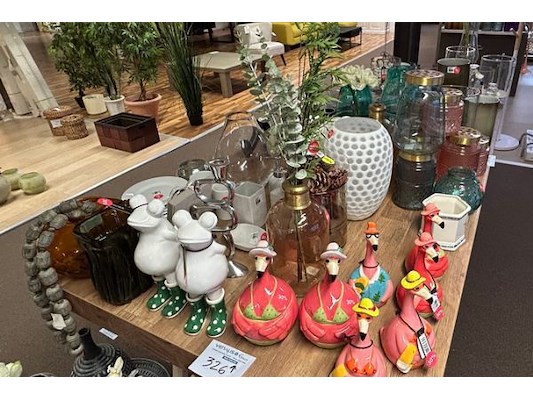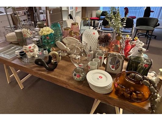 Ongeveer 70 stuks decoratie waaronder kaarshouders, vazen, potje, borden, ..., winkelwaarde 9.80 tot 99 euro/stuk