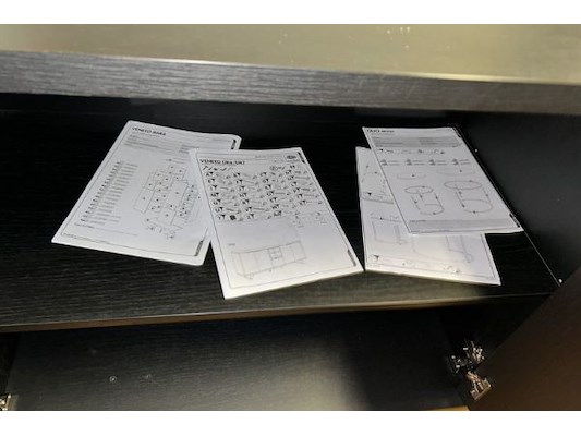 Dressoir 236 x 92 x 50 cm, barkast 113 x 192 x 50 cm, tafel 226 x 78 x 100 cm, winkelwaarde 4402 euro