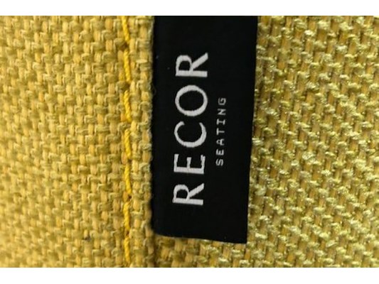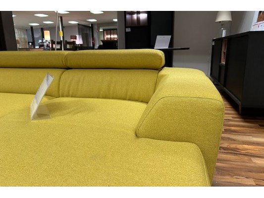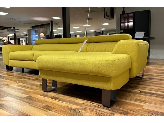 300 x 75/95 x 105/168 cm, 2.5 zit links, longchair rechts, cat A astro oker groen stof, winkelwaarde 2732 euro