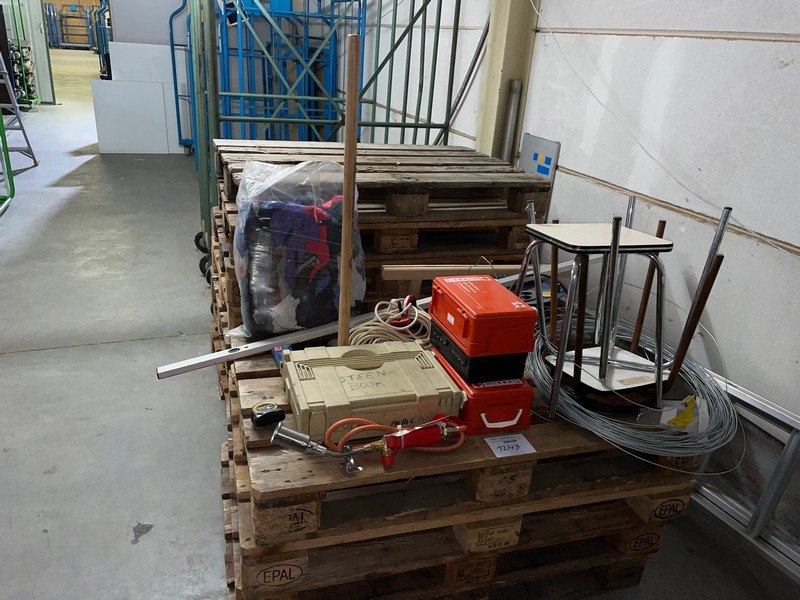 Zoals verlengkabels, voorhamer, ijzerdraad, waterpas, gasbrander, ...
