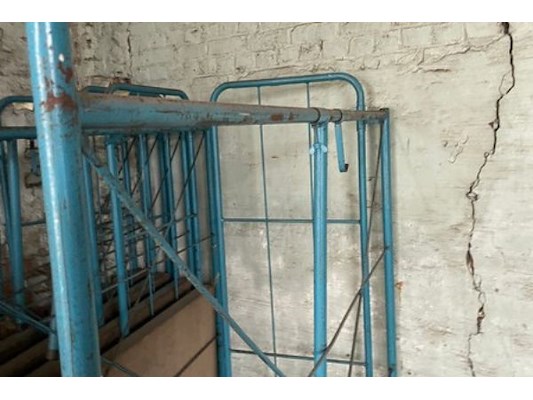 168 x 70 x 178 cm hoog, blauw houten vloer, in L-vorm nestbaar