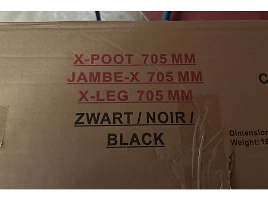 220 x 100 x 76 cm hoog, met zwart metalen onderstel, in doos