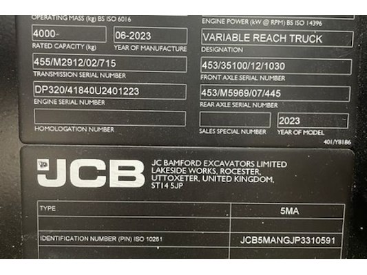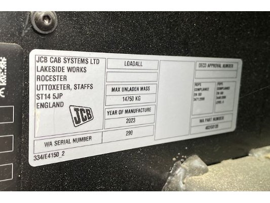 JCB 540-180, 4800 cm³, 81 kW, 1ste inschrijving 15/01/2025, diesel, enkel deel 1, 1 sleutel, chassisnummer JCB5MANGJP3310...