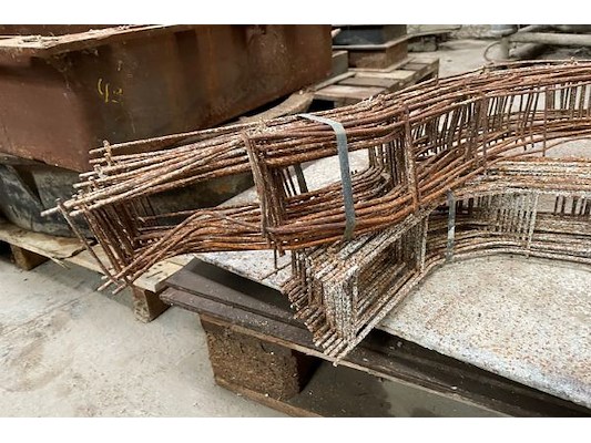 Betonijzer ongeveer 205 cm lang, resten ijzer platen ongeveer 115 x 70 cm per plaat