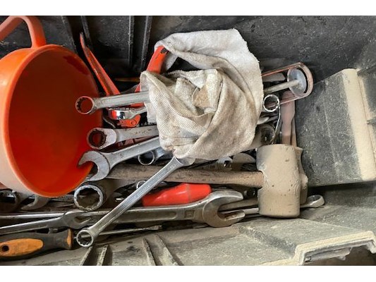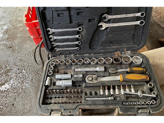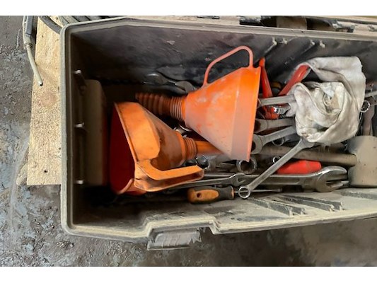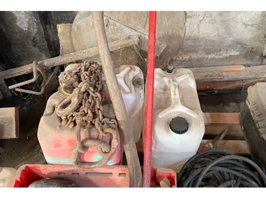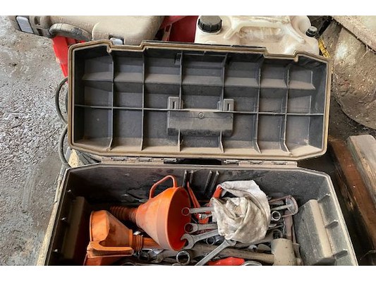 Waaronder 2 koffers met gereedschap, 5x jerrycan, bijl, krachtstroomkabel