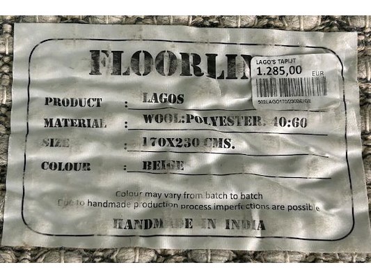 170 x 230 cm, winkelwaarde 1285 euro, kleur beige