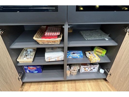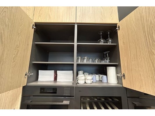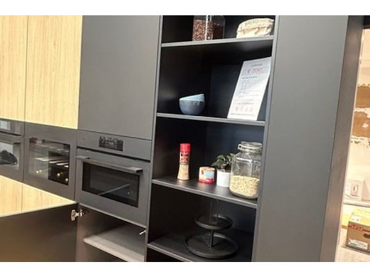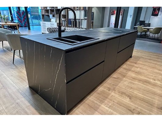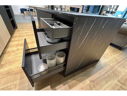 : bestaande uit: wandkasten: 300 x 55,5 x 255 cm hoog, eiland: 303,8 x 100 x 91,5 ...