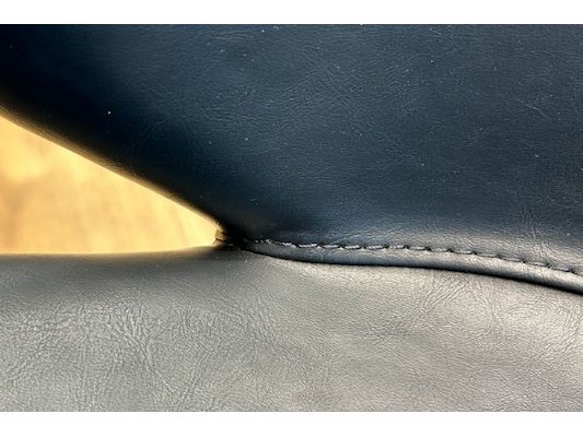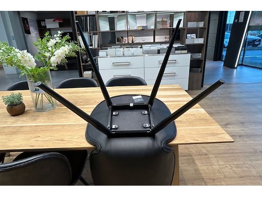 : tafel: 220,5 x 99,8 x 76,5 cm hoog + 6 lederen stoelen Dan Form + deco