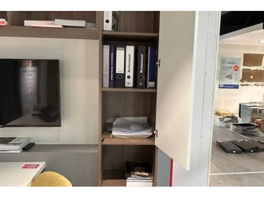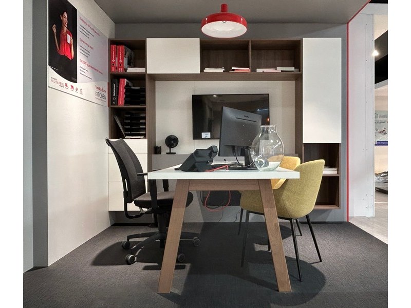 : bureau: 196 x 90 x 75 cm hoog, kast: 270 x 44 x 219 cm hoog + 2 gele stoelen Kave Home en bur...