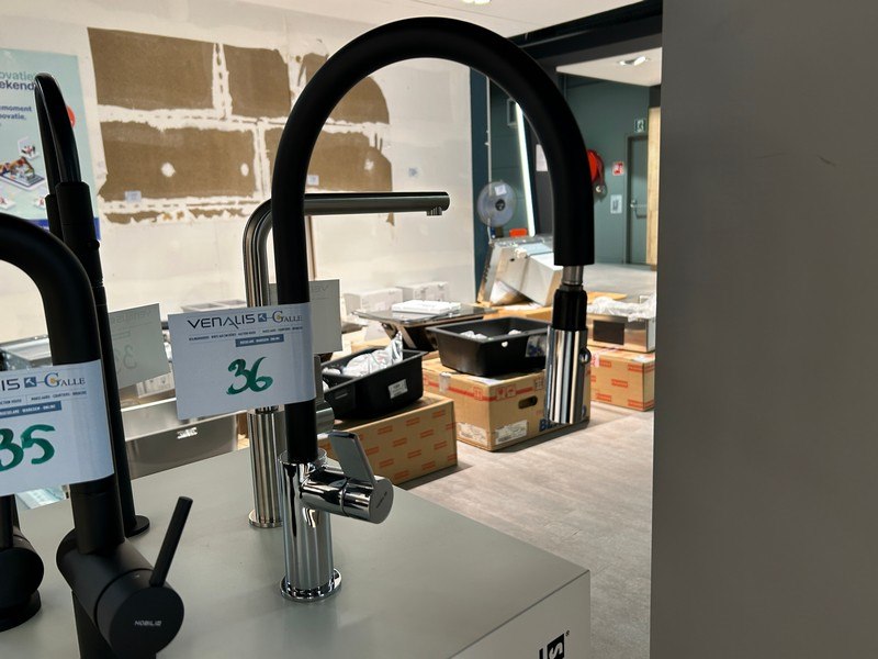 Zwart/chroom, uittrekbaar + doos
