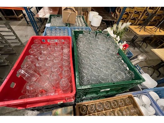 : 446 glazen van 7 cm diameter x 8.5 cm hoog en 214 glazen van 7 cm diameter x 11.5 cm hoog, zit ook in lot 372
