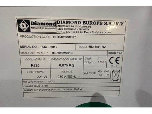 Model HL15/11-R2, bouwjaar 2019, 167 liter, met voorraadruimte met 1 deur, ongeveer 150 x 79 x 121 ...