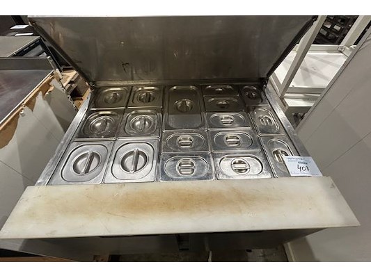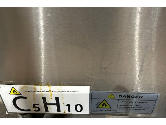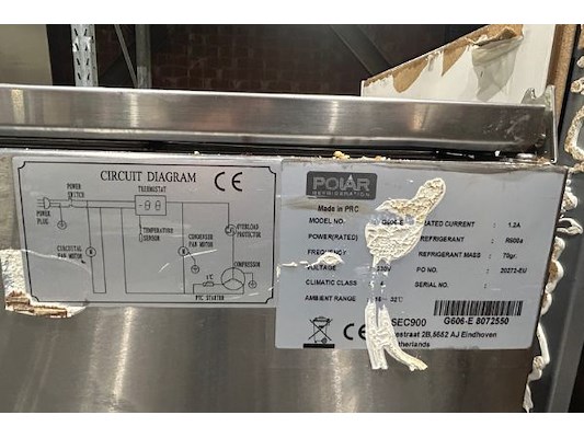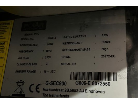 Model G606-E, 230V, R600A, ongeveer 90 x 70 x 94 cm hoog, op wielen, 17 voedingscontaine...