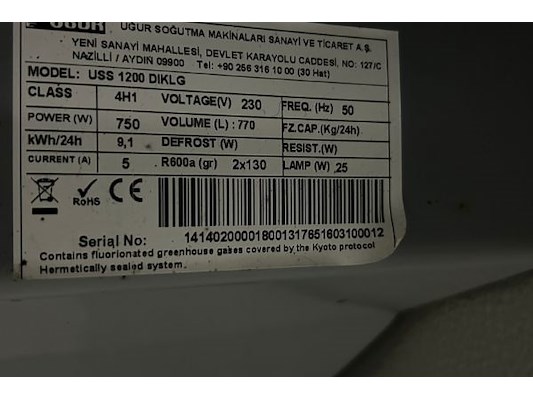Model USS 1200 DIKLG, 750 liter, 123 x 78 x 199 cm hoog