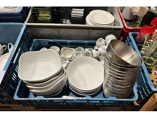Diverse borden, potjes, mandjes, kopjes, in diverse maten, verdeeld in 4 curves, excl curvers