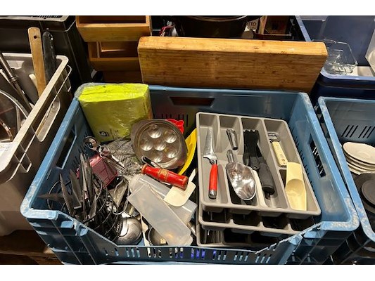 Waaronder frietvergieten, diverse maten opdienbladen, bestek, potten, snijplanken, excl curvers