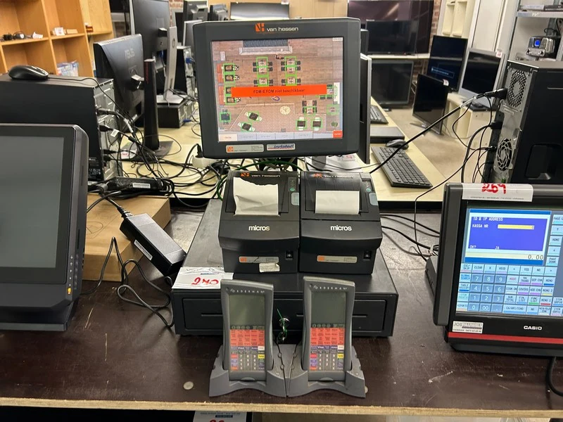 Met touchscreen, 2 micro's ticketprinters, kassalade met sleutel, 2 ordermantoestellen