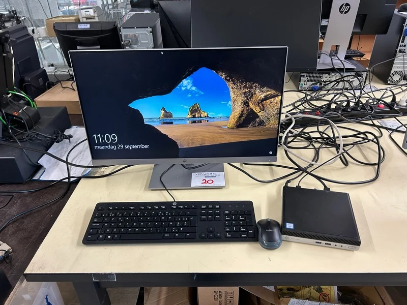 : Desktop mini + scherm, muis, toetsenbord, met wachtwoord: niet gekend