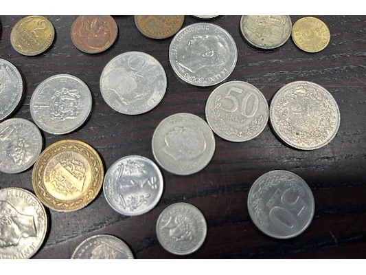 Ongeveer 40 munten waaronder Mexicaanse Peso, Britse dollar, Luxemburgse Frank, ...
