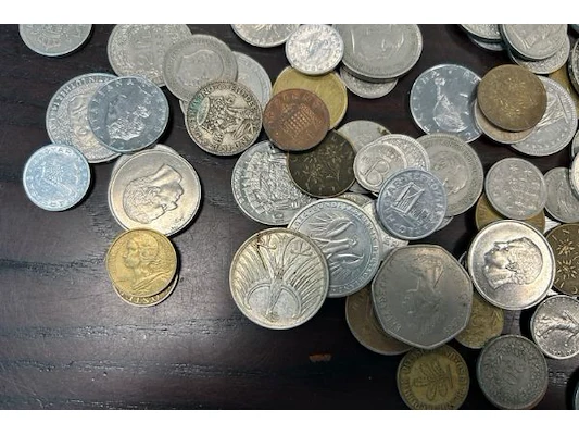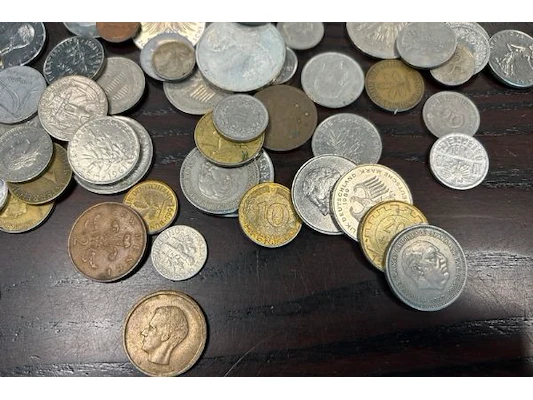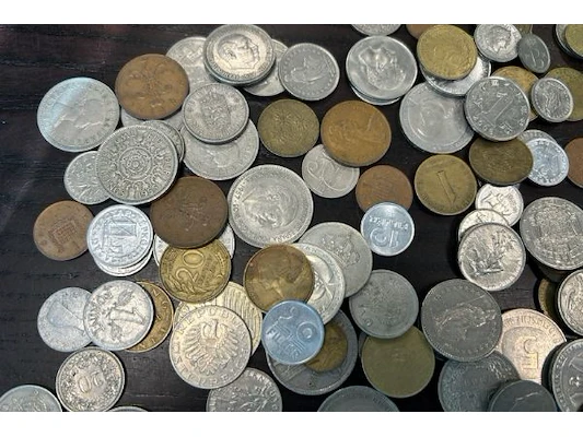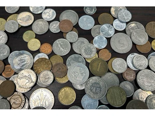 Ongeveer 200 munten waaronder Duitse Marken, Belgische Franken, Hongaarse Filler, ...