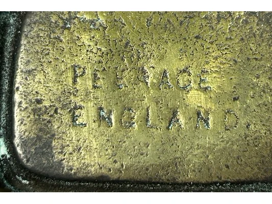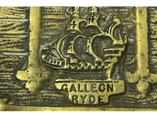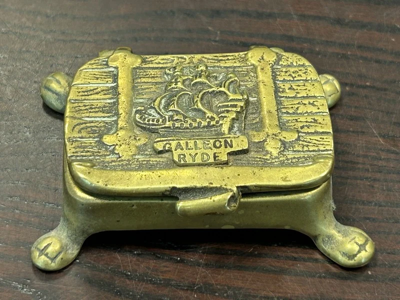 Tekst "Galleon Ryde", voor bewaren van snuif, postzegels, stempels, lucifers, op onderkant merk Pe...