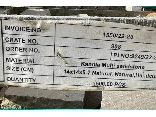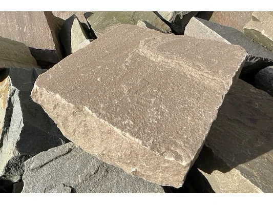 Kandia Multi sandstone, 14 x 14 x 5/7 cm dik, natural handcut, ongeveer 875 stuks verdeeld over 2 bakken = 20 m²