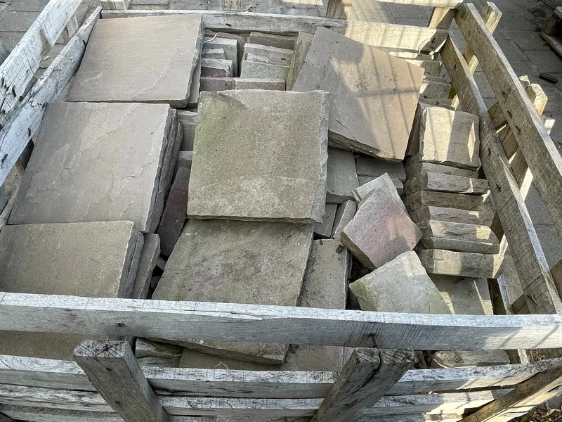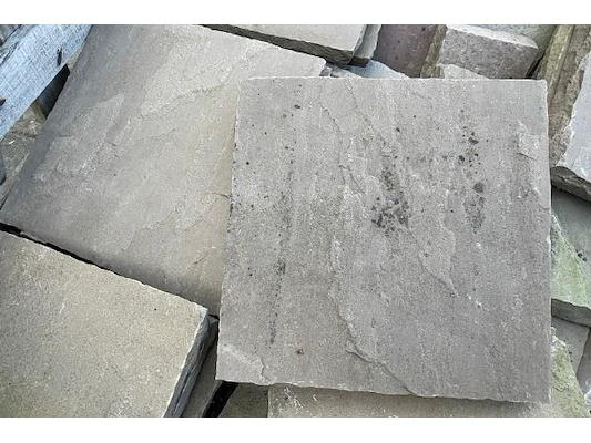 Natuur ruw met gekloven kanten, ongeveer 250 stuks van 14 x 14 x 3/5 cm dik, ongeveer 18 stuks van 3...